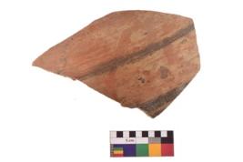 | Description / विवरण | Specimen of Potsherd black on red painted pottery. It is fine fabric in sharp contrast with painted design are executed in black pigment. |