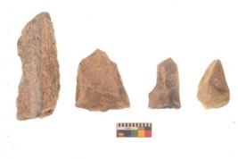 | Description / विवरण | There are n 4 flakes tool; there are large flakes with sides trimmed, Marks of secondary flaking are present on the both the faces. The dorsal is relatively flat. |