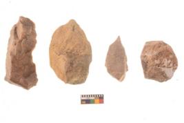 | Description / विवरण | There are n 4 flakes tool; there are large flakes with sides trimmed, Marks of secondary flaking are present on the both the faces. The dorsal is relatively flat. |