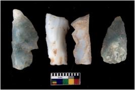 | Description / विवरण | There are n 4 flakes tool; there are multidirectional irregular scar pattern on them; made of short flakes and all four have tapering edges. |