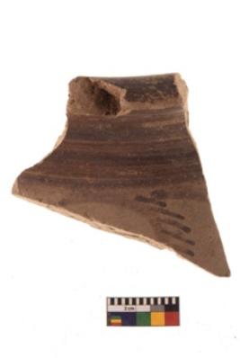 | Description / विवरण | Specimen of black on red ware with black decorative Horizontal band with small strokes below geometric painting. |