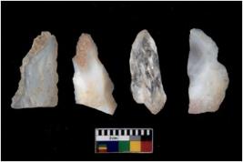 | Description / विवरण | There are n 4 flakes tool; there are triangular flake tool having flat thick body and deep long flake scar is seen on the upper side. It has flat thick bottom and pointed functional top. |