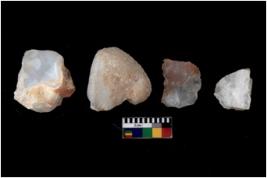 | Description / विवरण | There are n 4 flakes tool; there are multidirectional irregular scar pattern on them; made of short flakes and all four have tapering edges. |