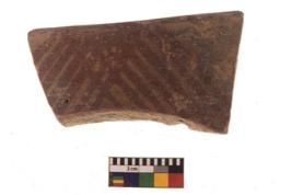 | Description / विवरण | Specimen of black on red ware with black decorative Mesh like pattern geometric painting. |