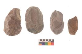 | Description / विवरण | There are n 4 flakes tool; there are flakes tool with prominent flaking marks. It made up of a large flakes with sides trimmed. |