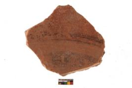 | Description / विवरण | Specimen of black on red ware with black decorative Horizontal lines geometric painting. |