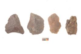 | Description / विवरण | There are n 4 flakes tool; there are large flakes with sides trimmed, Marks of secondary flaking are present on the both the faces. The dorsal is relatively flat. |