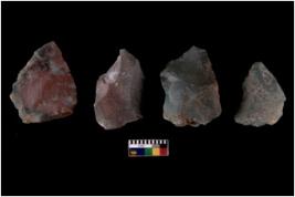 | Description / विवरण | There are n 4 flakes tool; there are multidirectional irregular scar pattern on them; made of short flakes and all four have tapering edges. |