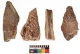 | Description / विवरण | There are n 4 utilized flake cores. There are multi directional irregular scar pattern on both dorsal and ventral face of the flake cores. Two are tapering at one end and two have sharp edges. |