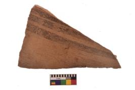| Description / विवरण | Specimen of Potsherd black on red painted pottery. It is fine fabric in sharp contrast with painted design are executed in black pigment. |