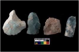 | Description / विवरण | There are n 4 flakes tool; there are multidirectional irregular scar pattern on them; made of short flakes and all four have tapering edges. |