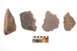 | Description / विवरण | There are n 4 flakes tool; there are large flakes with sides trimmed, Marks of secondary flaking are present on the both the faces. The dorsal is relatively flat. |