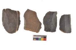 | Description / विवरण | There are n 4 utilized flakes. There are multi directional irregular scar pattern on both dorsal and ventral face of the flakes. One is flat at one end and three have blunted edges. |