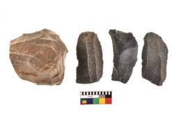 | Description / विवरण | There are n 4 utilized flakes. There are multi directional irregular scar pattern on both dorsal and ventral face of the flakes. Three are blunted and one is sharp edges. |