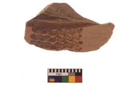 | Description / विवरण | Specimen of black on red ware with black decorative Wavy lines geometric painting. |