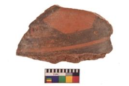| Description / विवरण | Specimen of potsherd with black decorative Nature motif painting . |