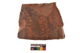 | Description / विवरण | Specimen of pipal leaf disign on exterior of thin coarse Red ware potsherd. |