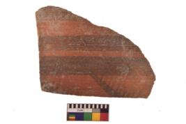 | Description / विवरण | Specimen of potsherd with black decorative Nature motif painting . |