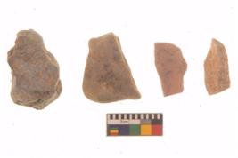 | Description / विवरण | There are n 4 flakes tool; there are flakes tool with prominent flaking marks. It made up of a large flakes with sides trimmed. |