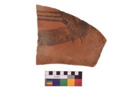 | Description / विवरण | Specimen of potter tool with black decorative geometric Net Pattern painting . |