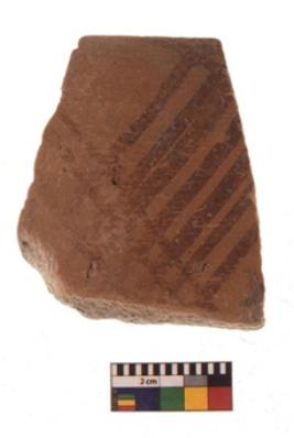 | Description / विवरण | Specimen of red ware with black decorative Intersecting lines geometric painting. |