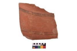 | Description / विवरण | Specimen of Potsherd black on red painted pottery. It is fine fabric in sharp contrast with painted design are executed in black pigment. |