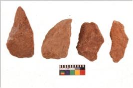 | Description / विवरण | There are n 4 flakes tool; there are large flakes with sides trimmed, Marks of secondary flaking are present on the both the faces. The dorsal is relatively flat. One is pointed functional top |