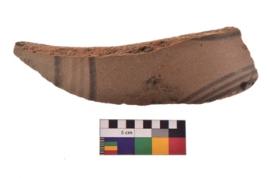 | Description / विवरण | Specimen of Potsherd black on red painted pottery. It is fine fabric in sharp contrast with painted design are executed in black pigment. |