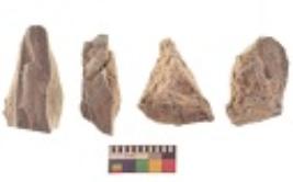 | Description / विवरण | There are n 4 utilized flake cores. There are multi directional irregular scar pattern on both dorsal and ventral face of the flake cores. Two are tapering at one and two have blunted edges. |