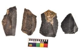 | Description / विवरण | There are n 4 utilized flakes. There are multi directional irregular scar pattern on both dorsal and ventral face of the flakes. two are tapering at one end and two are pointed edge. |