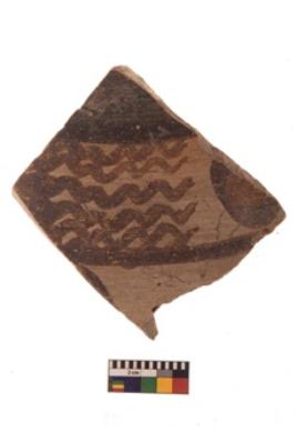 | Description / विवरण | Specimen of red ware with black decorative Wavy lines geometric painting. |