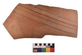 | Description / विवरण | Specimen of Potsherd with black decorative linear painting . |