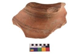 | Description / विवरण | Specimen of Potsherd black on red painted pottery. It is fine fabric in sharp contrast with painted design are executed in black pigment. |