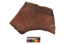 | Description / विवरण | Specimen of Potsherd with black decorative linear painting . |