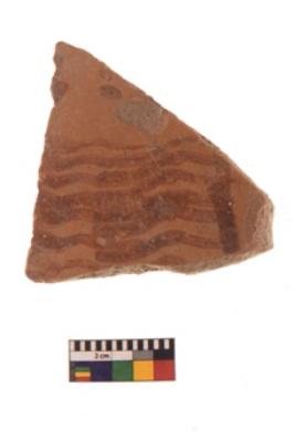 | Description / विवरण | Specimen of black on red ware with black decorative Wavy lines geometric painting. |