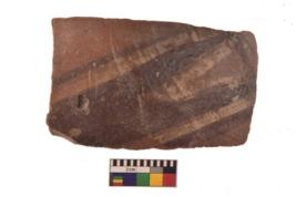 | Description / विवरण | Specimen of Potsherd with black decorative linear painting . |