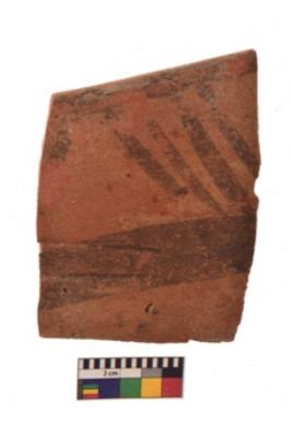 | Description / विवरण | Specimen of Potsherd with black decorative linear painting . |