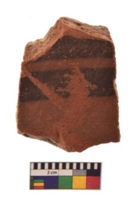 | Description / विवरण | Specimen of Potsherd black on red painted pottery. |