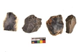 | Description / विवरण | There are n 4 utilized flakes. There are multi directional irregular scar pattern on both dorsal and ventral face of the flakes. One is blunted at one end and three are sharp edges. |