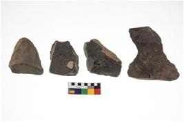 | Description / विवरण | There are n 4 utilized flakes. There are multi directional irregular scar pattern on both dorsal and ventral face of the flakes. One is pyramid at one end and three have sharp edges. |