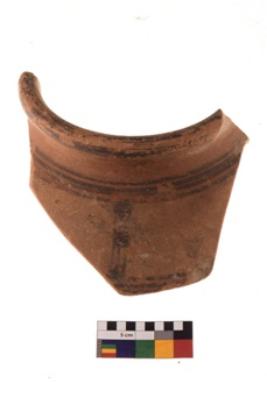 | Description / विवरण | Specimen of black on red ware with black decorative Horizontal lines attached with a vertical line geometric and nature painting. |