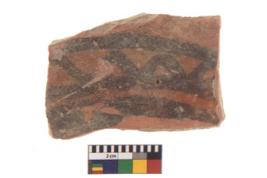 | Description / विवरण | The potsherd is decorated with two horizontal bands, one on the rim and other on the body ,while between them are set of triple aches |