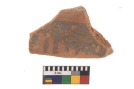 | Description / विवरण | Specimen of Potsherd with black decorative linear painting . |