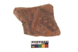 | Description / विवरण | Specimen of potsherd with black decorative geometric Net Pattern painting . |