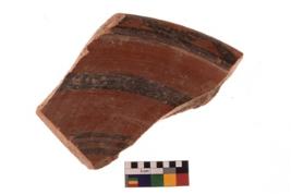 | Description / विवरण | Specimen of black on red ware with black decorative Horizontal lines geometric painting. |