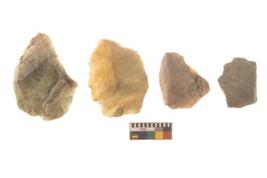 | Description / विवरण | There are n 4 flakes tool; there are flakes tool with prominent flaking marks. It made up of a large flakes with sides trimmed. |