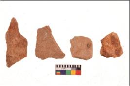 | Description / विवरण | There are n 4 flakes; there are multidirectional irregular scar pattern on them; made of short flakes and all four have blunted edges. |