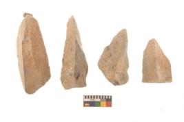 | Description / विवरण | There are n 4 flakes tool; there are large flakes with sides trimmed, Marks of secondary flaking are present on the both the faces. The dorsal is relatively flat. |
