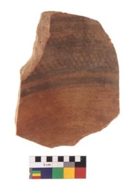 | Description / विवरण | Specimen of potter tool with black decorative geometric Net Pattern painting . |