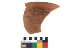 | Description / विवरण | Specimen of Potsherd black on red painted pottery. It is fine fabric in sharp contrast with painted design are executed in black pigment. |